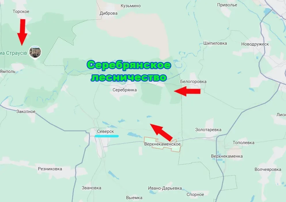 Как уже сообщало «Военное обозрение», охват Серебрянского лесничества становится более просматриваемым после освобождения армией России населённого пункта Торское и продвижения к югу от этого села. Противник в связи с утратой Торского утратил и прежний вариант логистики на данном направлении, отчего его положение в том самом лесничестве ухудшилось.