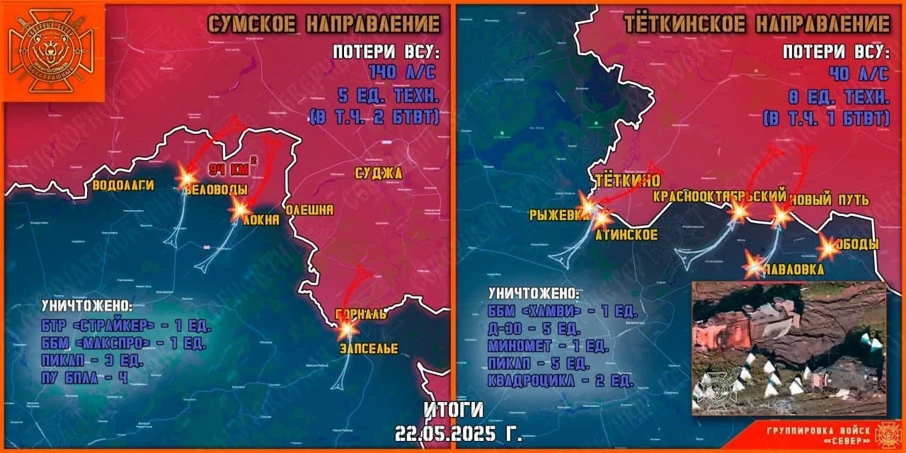 ВСУ пытаются прорваться на Тёткинском направлении в Курской области: свежие данные о боях в приграничье на 23.05.2025