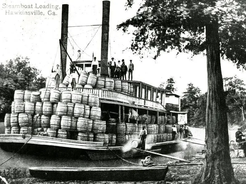 А вот так на этих пароходах перевозили грузы. В данном случае это бочки!
