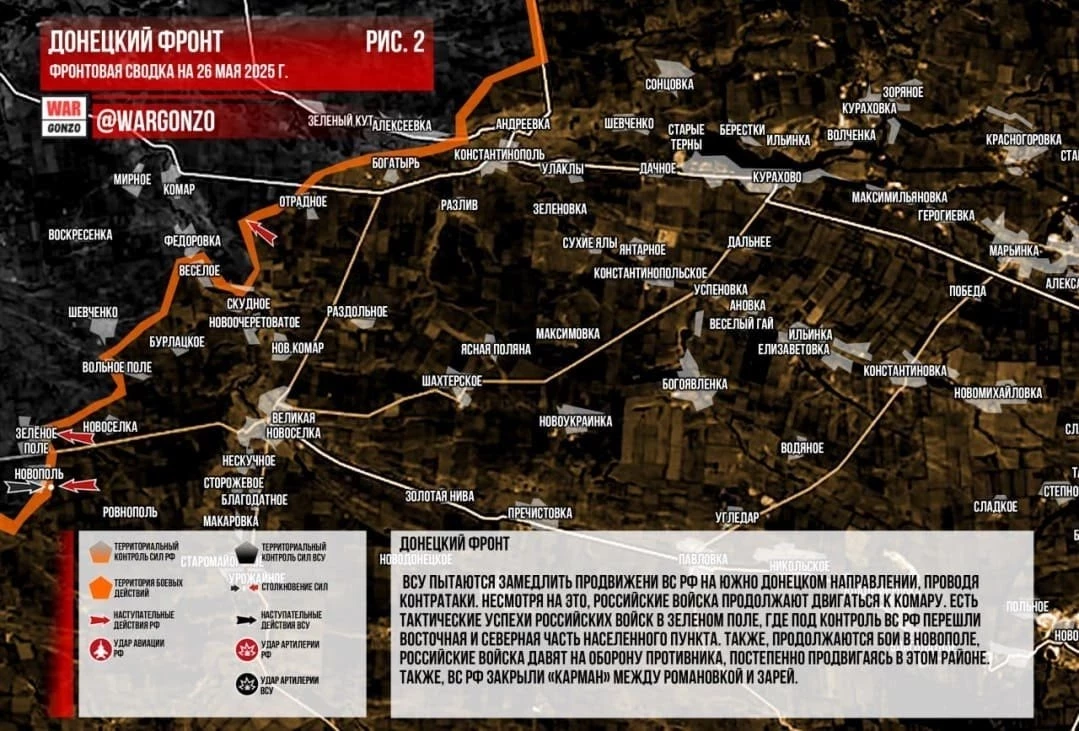 ВС РФ ведут ожесточённые бои у Котляровки и Троицкого и на Покровском направлении: свежие данные на 26.05.2025