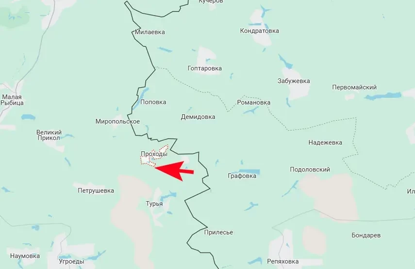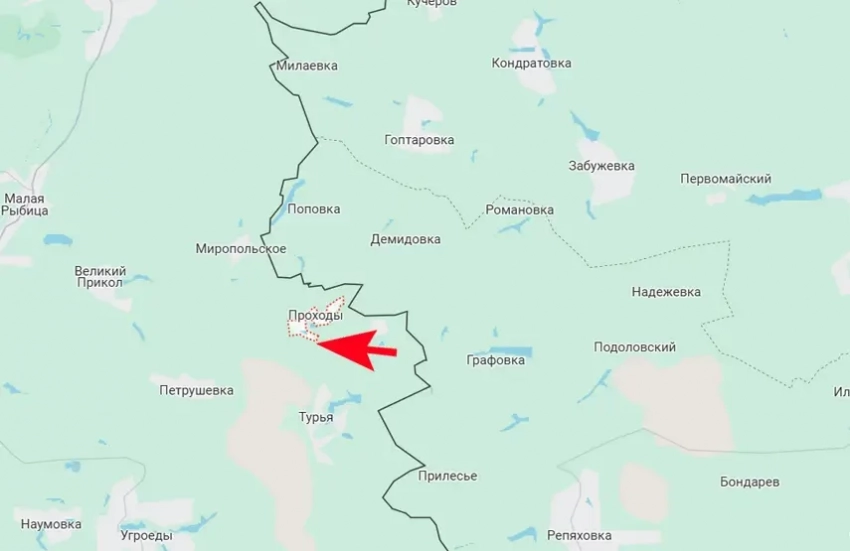 Речь идёт о территориях, юго-восточнее Миропольского. Выбив противника с территории РФ, российские войска освободили Марьино Сумской области, что некоторое время назад подтвердило Минобороны. Теперь стало известно, что российские войска осуществляют охват соседнего села Проходы.