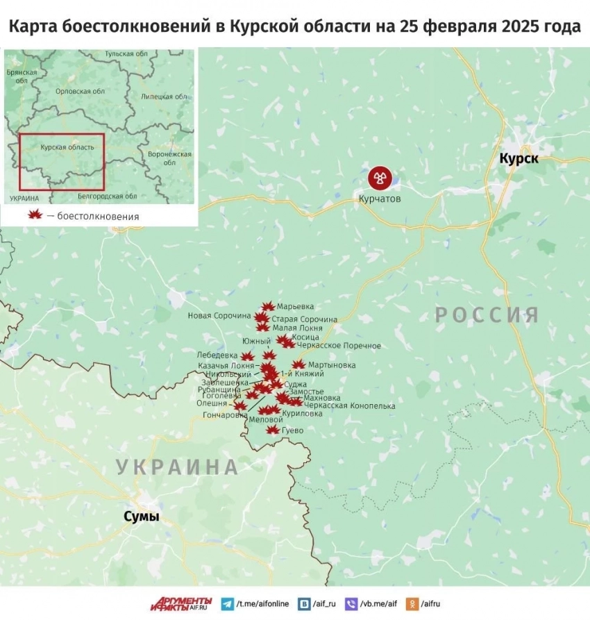 Свежая карта боевых действий в Курской области от 25.02.2025