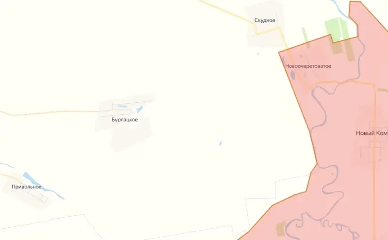 Подразделения российской армии продолжают выдавливать силы противника в районе населенных пунктов Бурлацкое, Привольное и Скудное к северо-западу от Большой Новоселки.
