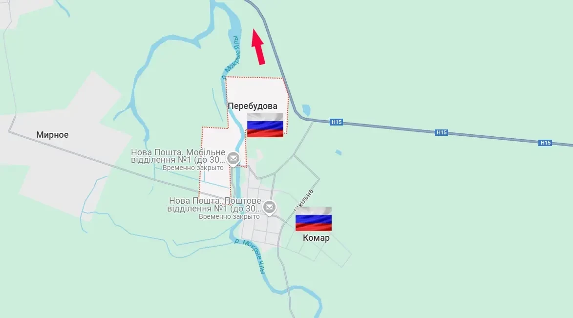 Российские войска после освобождения села Комар продолжили продвижение севернее – к дороге Н15, что ведёт к Запорожью. В результате успешных боевых действий ВС РФ взяли под контроль так называемый южный изгиб этой дороги в районе упомянутого Комара, а также освободили восточную часть соседнего села Перебудова (Перестройка). Противник остаётся на окраине западной части - за рекой.