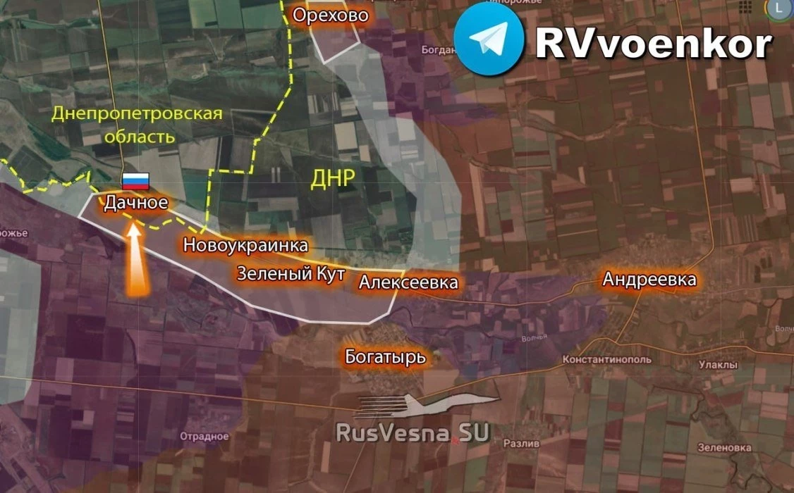 Российская армия освободила село Дачное в Днепропетровской области и прорвалась на 4 километра вглубь. Об этом сообщает Telegram-канал "Военкоры Русской Весны" со ссылкой на военнослужащих 114-й бригады ВС РФ.