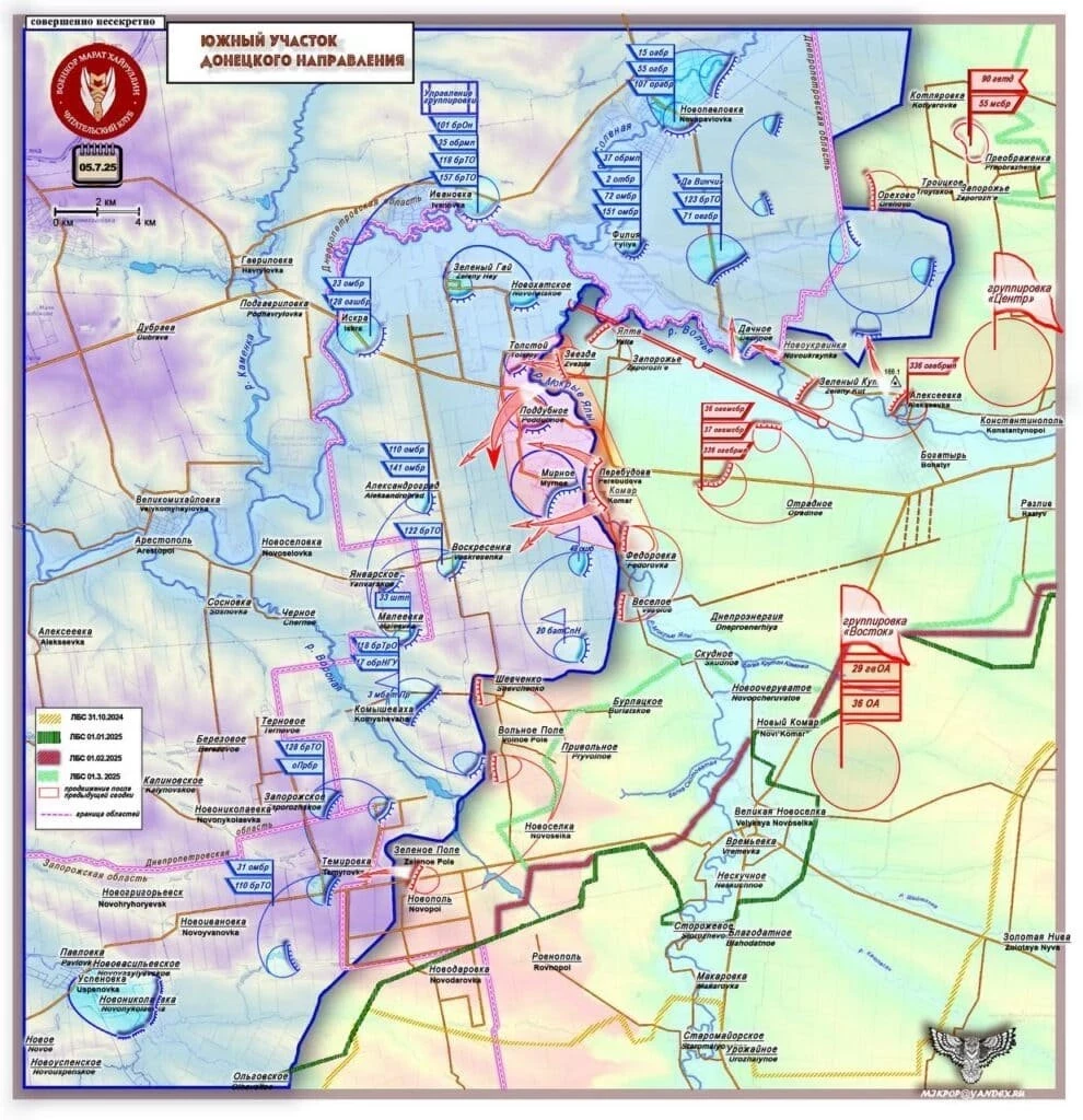 На Запорожском направлении продолжается зачистка Каменского, наши десантники громят врага. Российские силы расширяют зону контроля вдоль северного берега Янчекрака. Успехи зафиксированы северо-восточнее Степового, ведутся позиционные бои у Щербаков.
