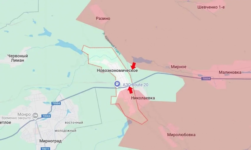 Российские войска близки к полному уничтожению сил противника в районе села Новоэкономическое, что западнее Мирнограда на Покровском направлении. Сегодня ВС РФ значительно продвинулись на этом участке фронта, овладев южной частью Новоэкономического – до автомобильной дороги Т0504, ведущей в Мирноград и Покровск (Красноармейск).