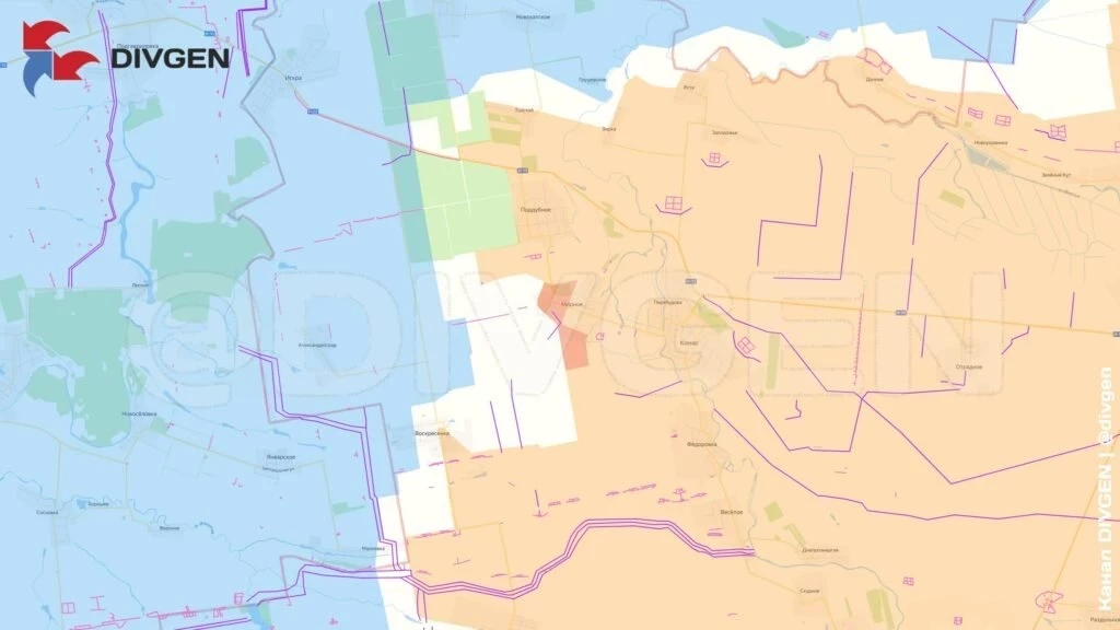 На Краснолиманском направлении ВС РФ расширяют зону контроля с опорой Зелёную Долину, чтобы срезать выступ в районе Пески Радьковские и выйти к Осколу. Для этого предстоит прорвать основной рубеж обороны ВСУ у Оскольского водохранилища. Пока же наши вышли к первым позициям этого рубежа по руслу реки Нитриус на линии Глущенково-Шандриголово-Новосёловка. На этом участке река имеет наибольшую ширину, а вот выше по течению, у Глущенково, практически пересыхает, там наши и атакуют на рубеже Глущенково-Новый Мир.