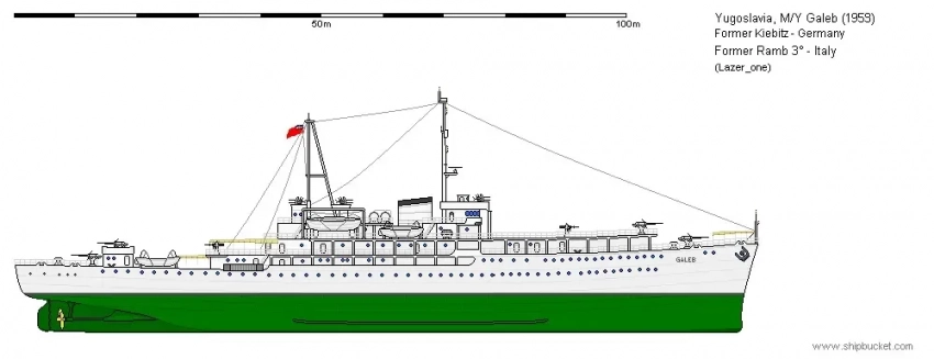 Свою новую жизнь многострадальное судно начало в социалистической Югославии. В 1948 году его подняли с 22-метровой глубины, и в 1952 году после ремонта и модернизации на судоверфи в Пуле под названием «Galeb» («Чайка») стал учебным кораблем югославского ВМФ.