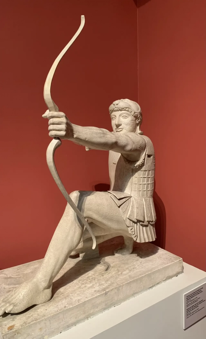 Лучник. Слепок, гипс. Дар К.Т. Солдатенкова, 1893 г. Подлинник: около 500-490 до н.э.; мрамор; хранится в Глиптотеке, Мюнхен