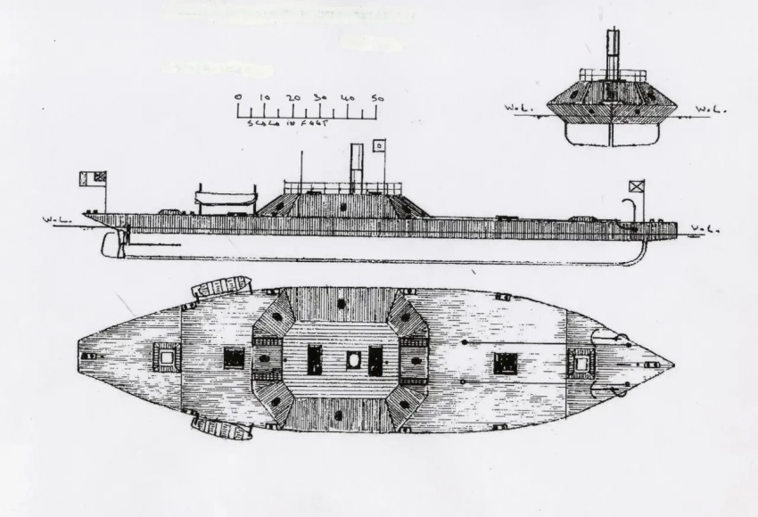 Две проекции броненосца «Индианола»
