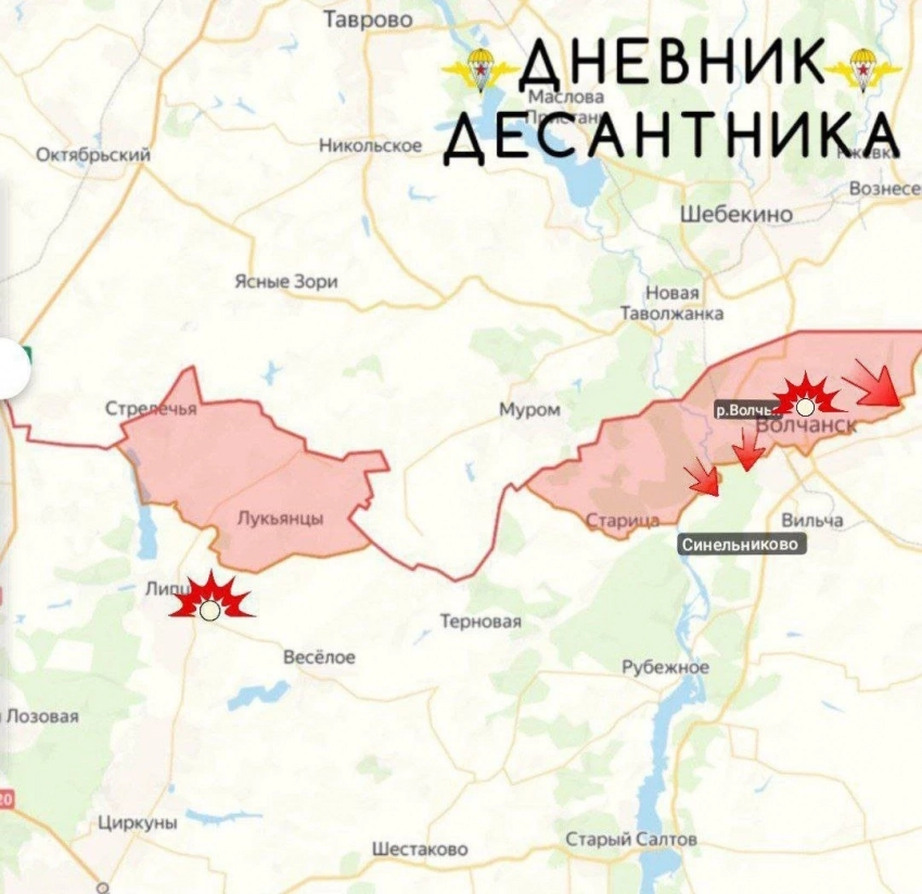 На Харьковском участке тяжёлые бои в южной части Волчанска и западнее Синельниково. Противник стянул свежие резервы и пытается вернуть себе контроль над южной частью города. В районе Хатнего есть тактические успехи.