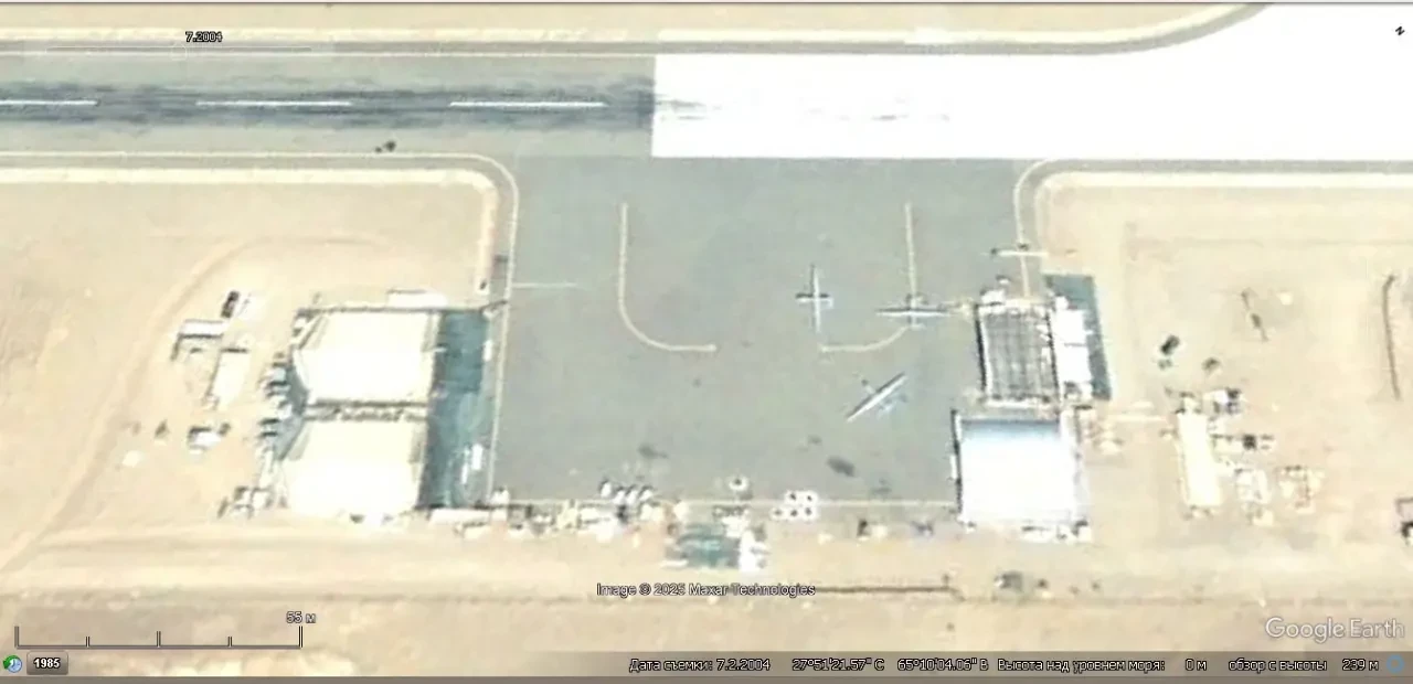 Спутниковый снимок Goоgle Earth: БПЛА Predator на аэродроме Шамси в Пакистане. Снимок сделан в июле 2004 года