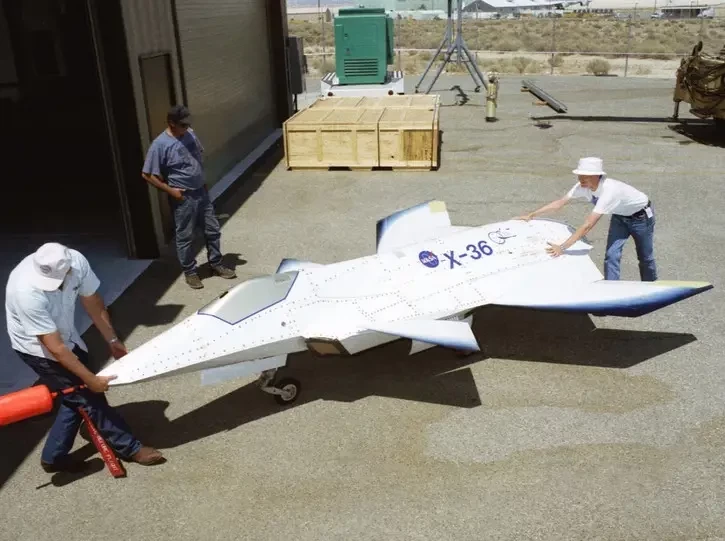 Однако я не смог пройти мимо экспериментального БПЛА X-36, созданного корпорацией McDonnell Douglas совместно с NASA в качестве прототипа малозаметного высокоманёвренного боевого самолёта нового поколения. Всего было построено два экземпляра.