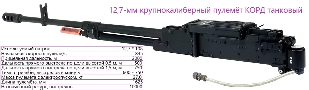 Перечень целей, доступных для поражения крупнокалиберным пулемётом, а тем более парой, гораздо шире, чем у пулемёта винтовочного калибра, да и гарантия поражения выше. Два таких помощника-близнеца существенно облегчат жизнь экипажу и дадут возможность экономии боекомплекта основного орудия и его ресурса. Боекомплект на каждый ствол вполне разумно ограничить пятью сотнями патронов (общий вес БК около 135 кг). При наличии двух спаренных с основным орудием пулемётов, оснащённых электроспуском, появляется возможность опробовать вариант поочерёдной стрельбы каждого ствола при сохранении номинальной скорострельности, как у одного пулемёта. Это позволит решить проблему перегрева стволов, о чём заранее предупредили неравнодушные читатели.