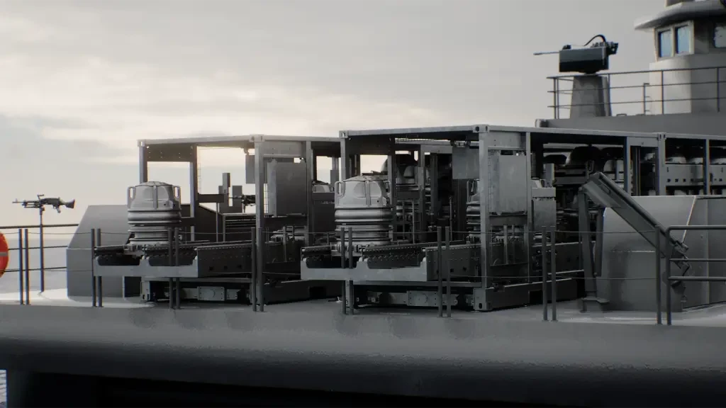 А броня необходима. Если это не одноразовый корабль-камикадзе, а это не он, то надо установить броню там, где она необходима, например вокруг генераторных установок, двигателей, топливных баков и мостика. Наличие брони увеличивает стоимость корабля, водоизмещение и так далее. Но водоизмещение – это большие двигатели и генераторы, а генераторы – это комплексы радиоэлектронной борьбы или система противодействия дронам по типу Epirus, например.