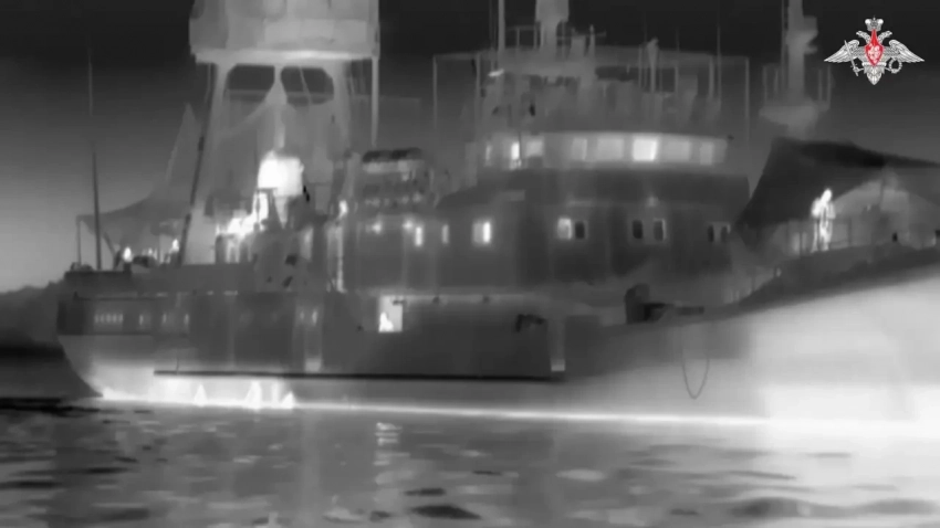 Украинский разведывательный корабль в объективе российского БЭК. Фото Минобороны РФ