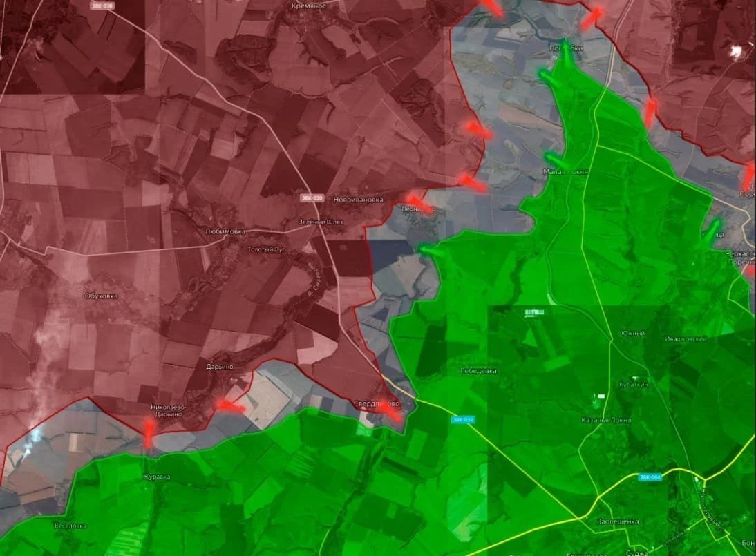 В районе Свердликово ВС РФ наступают в юго-восточном направлении, вдоль государственной границы, стремясь расширить контроль над ключевыми участками.