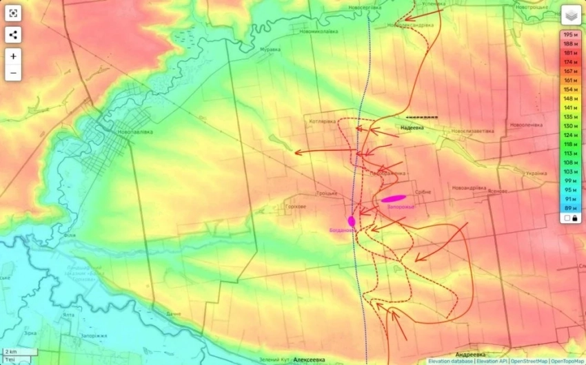 Вчера вечером нам удалось зайти на окраины Богдановки, а сегодня появилось видео движения нашей механизированной колонны уже юго-западнее Котляровки (от этой точки до Днепропетровской области остается всего 3,5 км).
