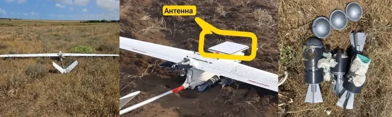 Украинский разведывательно-ударный дрон «Довбуш Т-20» с антенной Starlink и боеприпасами, посаженный в Красногвардейском районе Крыма. Изображение podolyaka.ru