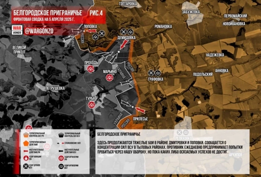 Главная » Эксклюзив » В Белгородской области ВСУ продолжают попытки прорваться: ВС РФ выбивают врага из Демидовки, свежие данные на 06.04.2025