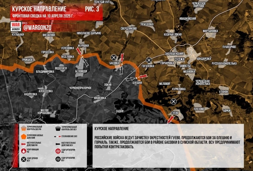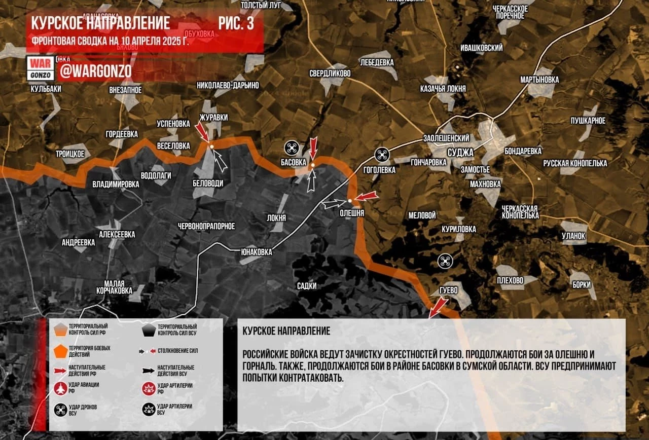 Свежая карта боевых действий в Курской области. Данные на сегодняшний день, 10.04.2025