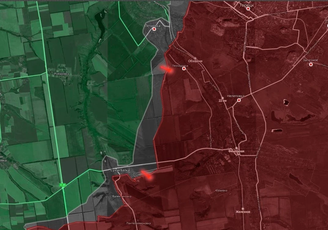 На Дзержинском (Торецком) направлении наши наши парни освободили Тарасовку, а восточнее ВС РФ после освобождения Сухой Балки, продолжают охватывать Петровку и Щербиновку с запада, продвигаясь к Романовке.