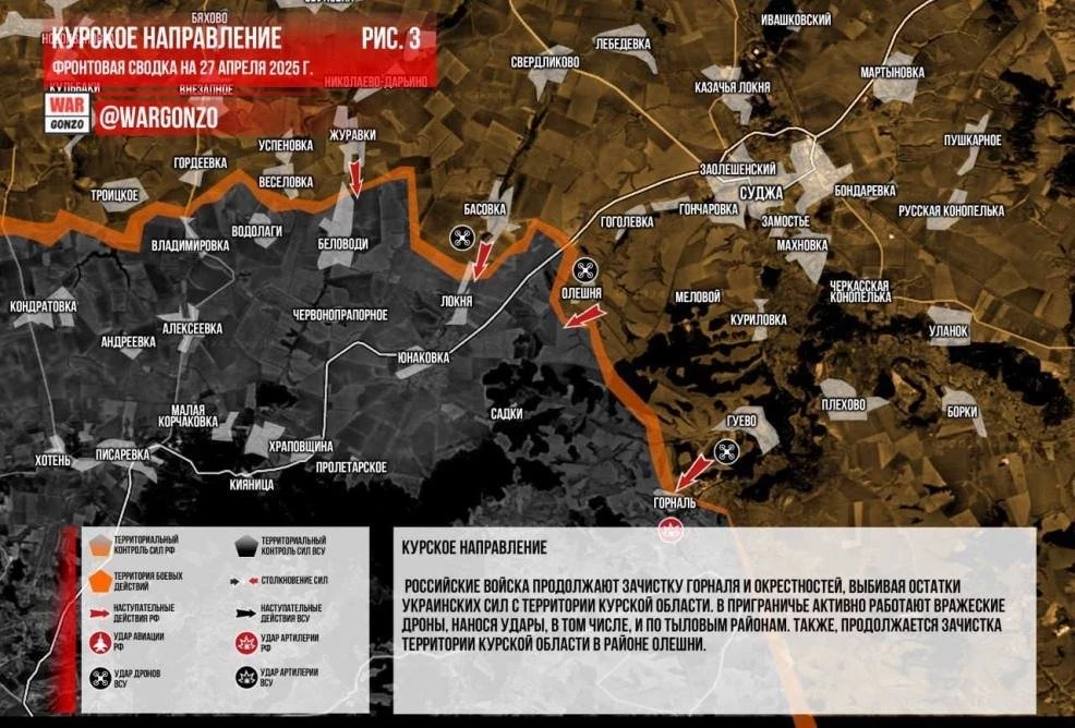 Обновлённая карта боевых действий на Украине по данным на 14:00 мск от 27.04.2025: обстановка в зоне СВО на сегодня