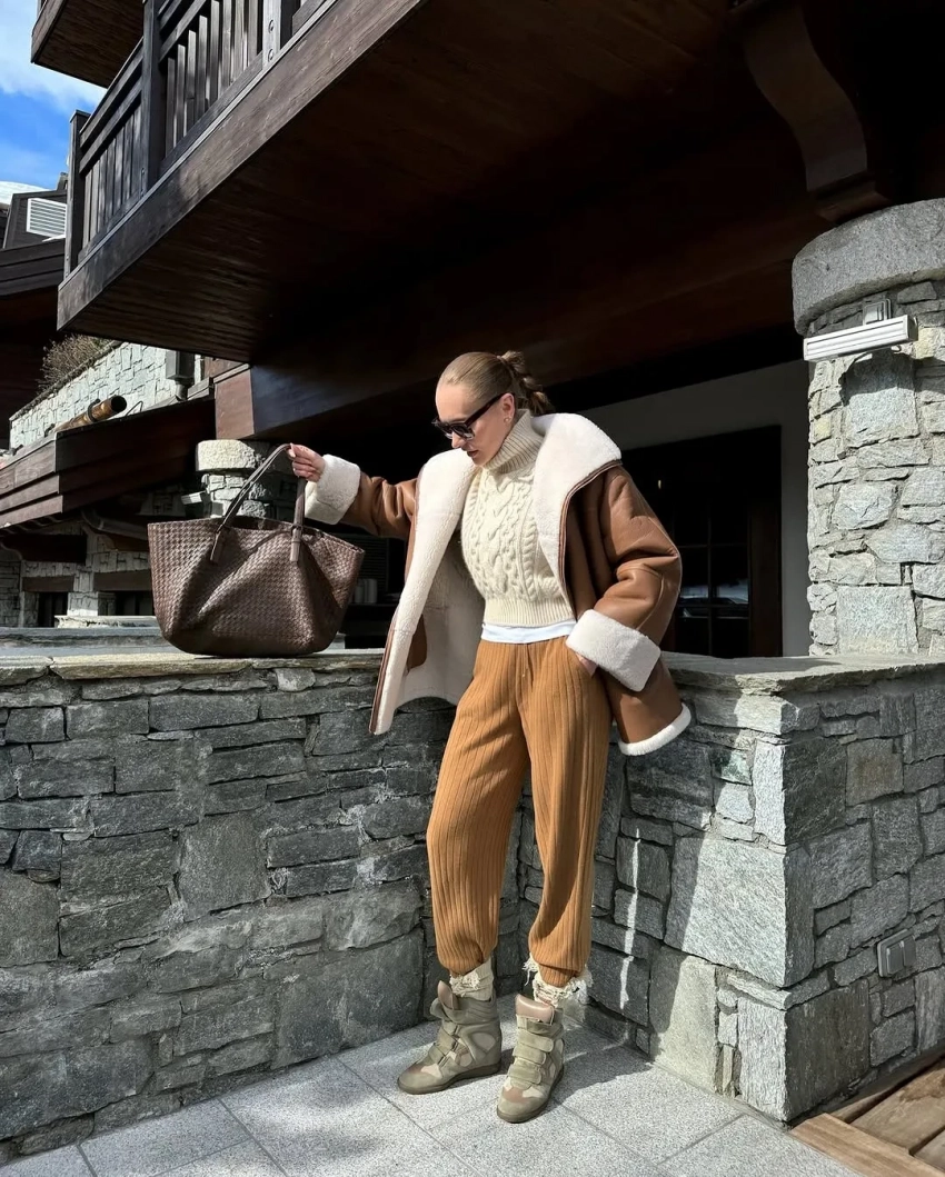 На фото 42-летняя Давыдова позирует на фоне гор в комбинезоне Skims и меховой шляпе, летает на вертолёте, отдыхает в местном ресторане в шубе и балетках Miu Miu, а также выгуливает свою сумку Hermes из крокодиловой кожи с серым костюмом и ботильонами Maison Margiela. "Самое сложное для меня на семейных каникулах — это объяснить мужу, зачем мне такое количество чемоданов, и выдержать его взгляд. А остальное уж как по маслу!" — написала Наталья.
