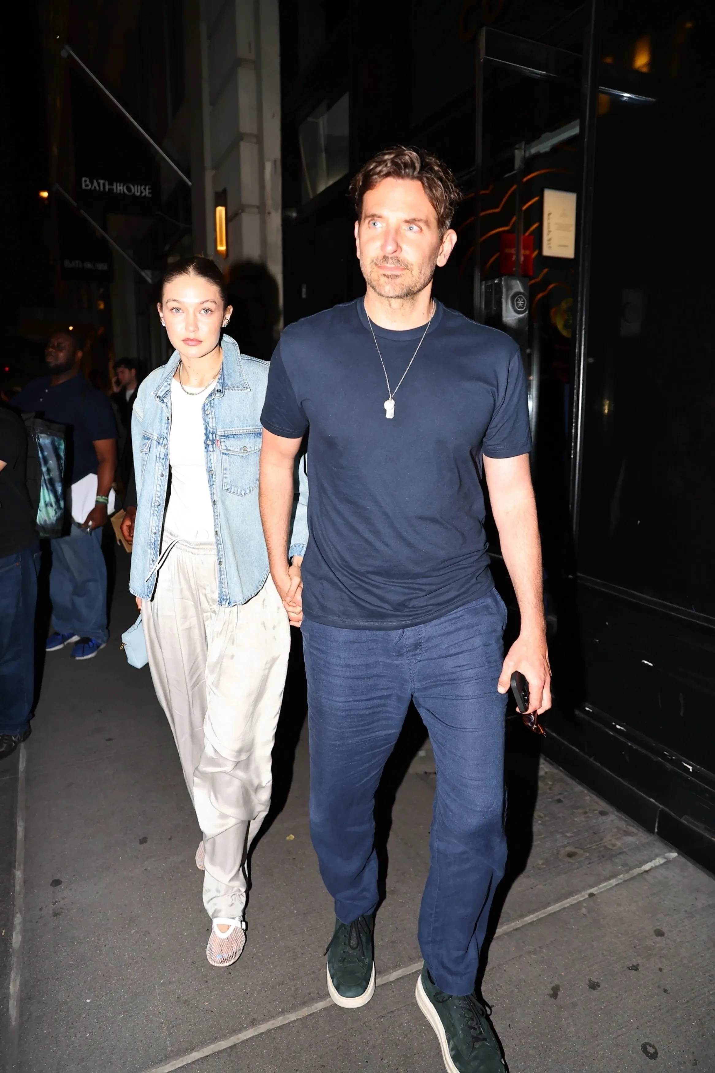 Папарацци удалось заснять знаменитостей, когда те возвращались домой. На 32-летней Инес де Рамон в тот вечер было светло-желтое платье с открытыми плечами, а на 61-летнем Питте — лавандовая шелковая рубашка и джинсы. 50-летний Купер и 30-летняя Хадид оделись в стиле кэжуал.