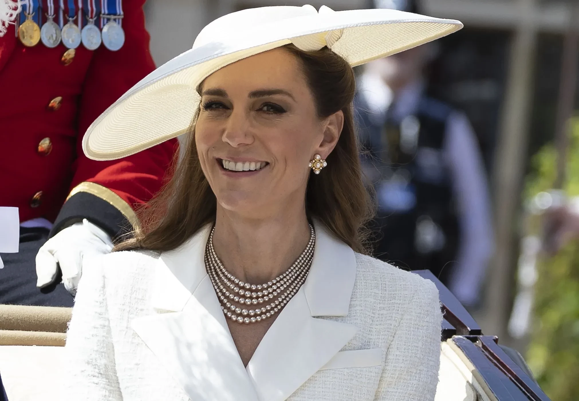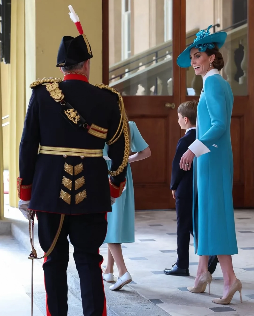 Мероприятие, которое по традиции проходит в часовне Святого Георгия в Виндзорском Замке, посетили король Карл III и королева Камилла, принц и принцесса Уэльские и другие члены королевской семьи. Для этого выхода в свет Кейт Миддлтон выбрала белоснежный костюм Self Portrait, который дополнила шляпой в тон. Уильям как член ордена был в церемониальном костюме и шляпе с плюмажем.