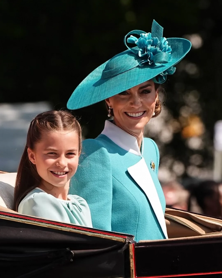 В этот раз Кейт и Уильяма засняли во время каретной процессии, детей с ними не было. В полном составе семья появлялась на публике два дня назад во время праздничного парада Trooping the Colour в честь "официального" дня рождения короля. Тогда Кейт блистала в голубом платье-пальто Catherine Walker — этим нарядом она повторила образ своей покойной свекрови принцессы Дианы: точно такое же платье та надевала 33 года назад.