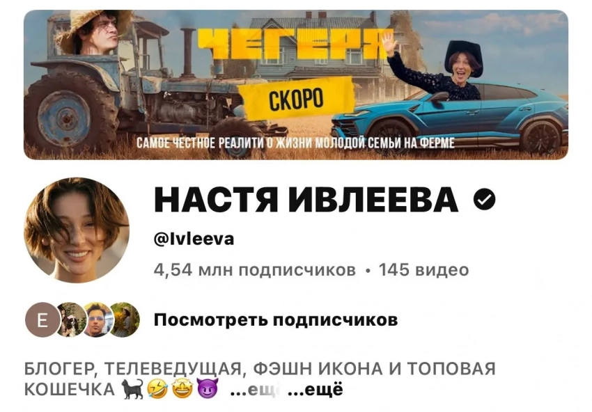 "Самое честное реалити о жизни молодой семьи на ферме", — гласит слоган шоу, которое называется "Чегеря" (на Дальнем Востоке "чигерями" называют труднодоступные, отдалённые места). Пока Настя показала только обложку реалити, которая украсила её профиль на Youtube. На картинке Филипп Бегак едет на тракторе, а Ивлеева машет рукой из машины.