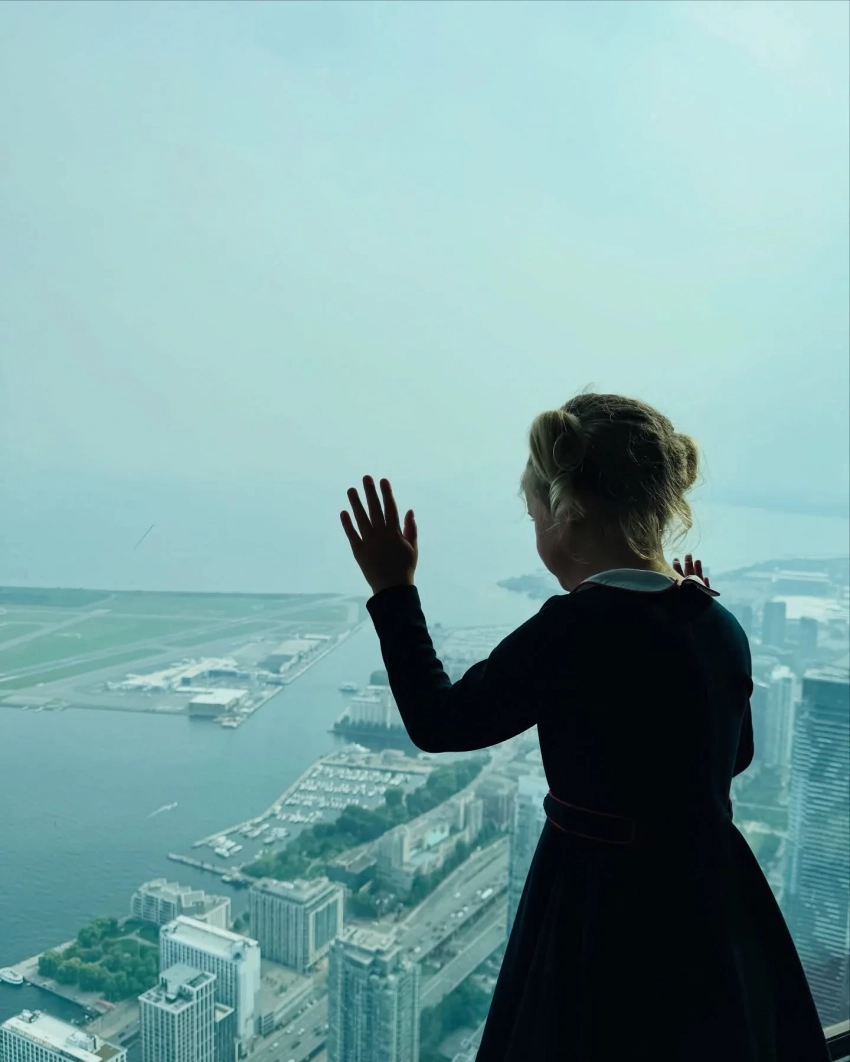 На снимке Дейзи позирует на фоне городского пейзажа спиной к фотографу. Орландо и Кэти практически не показывают лицо дочери, но совсем недавно они впервые показали девочку крупным планом во время полёта Перри в космос.