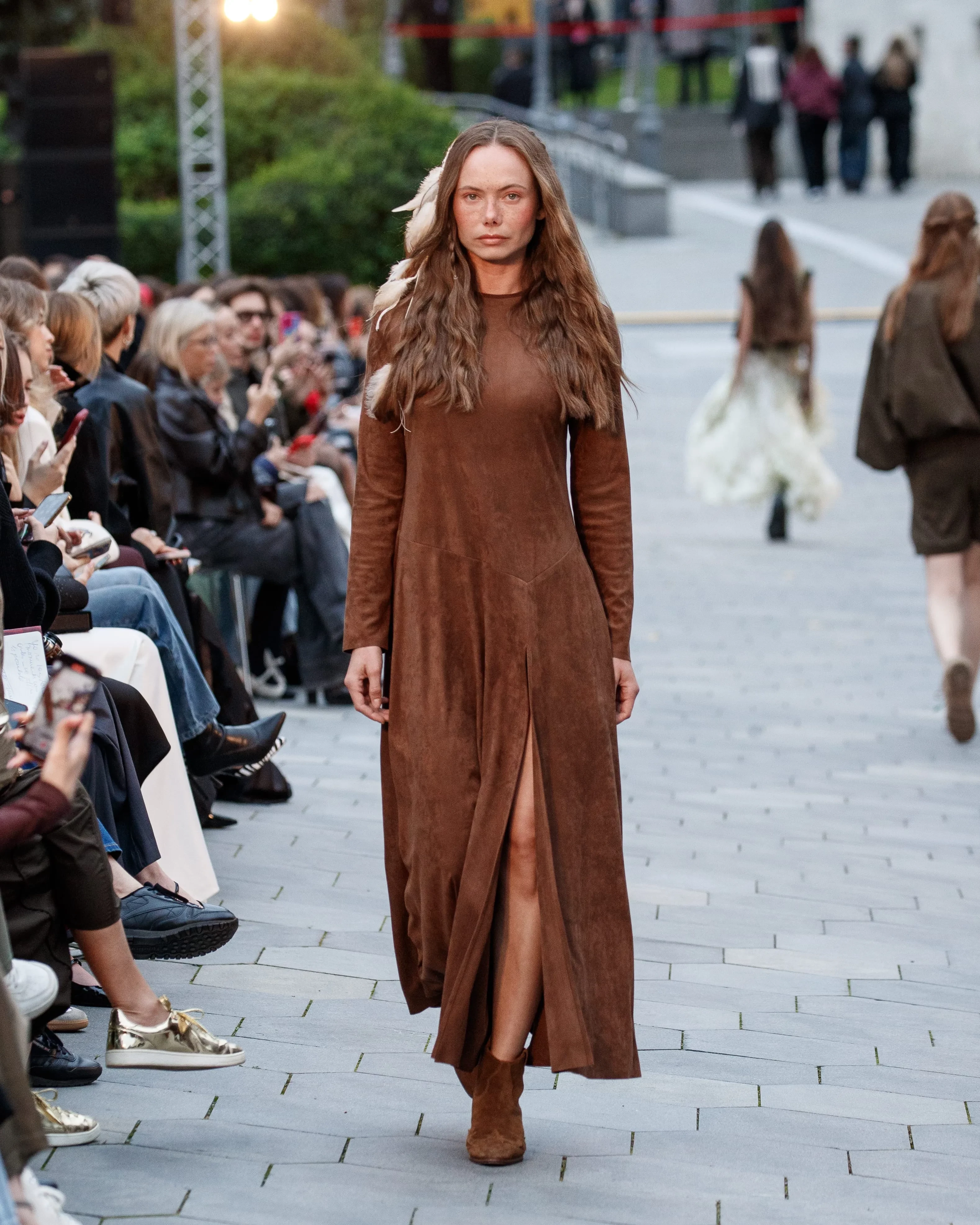 Больше всего внимания привлёк показ Alena Akhmadullina. В первых рядах сидели звезда "Белого лотоса" и "Игры престолов" Юрий Колокольников вместе с Вильмой Кутавичюте, а также Софья Эрнст. В самом показе приняли участие Елена Летучая, Светлана Бондарчук и Виктория Шелягова. На подиуме показали образы, вдохновлённые мотивами средневекового русского искусства, архивные модели и авторские работы дизайнера.