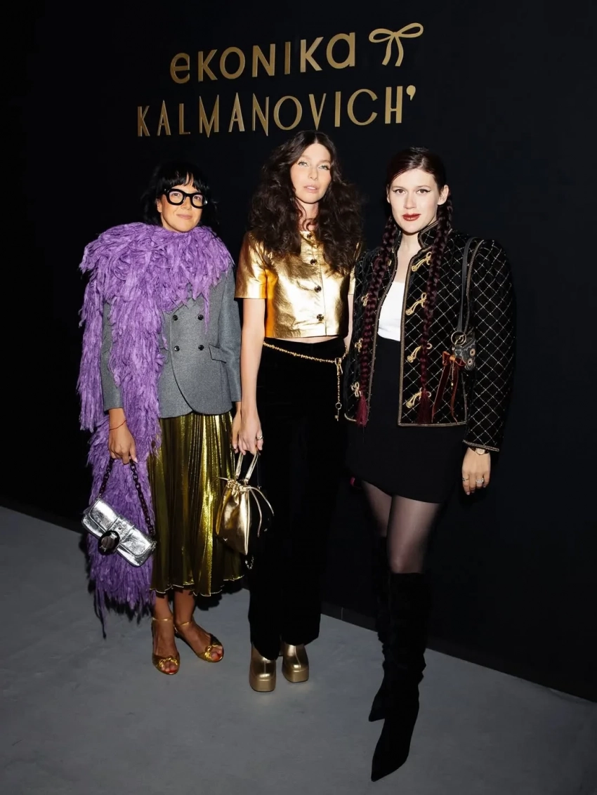 В Москве состоялась презентация совместной коллекции обуви Ekonika и Kalmanovich дизайнера Юлии Калманович. Гостями показа стали Ксения Собчак, Софья Эрнст и Дина Саева, которая впервые вышла в свет после задержания бойфренда Никиты Ефремова по делу о финансировании ФБК*.