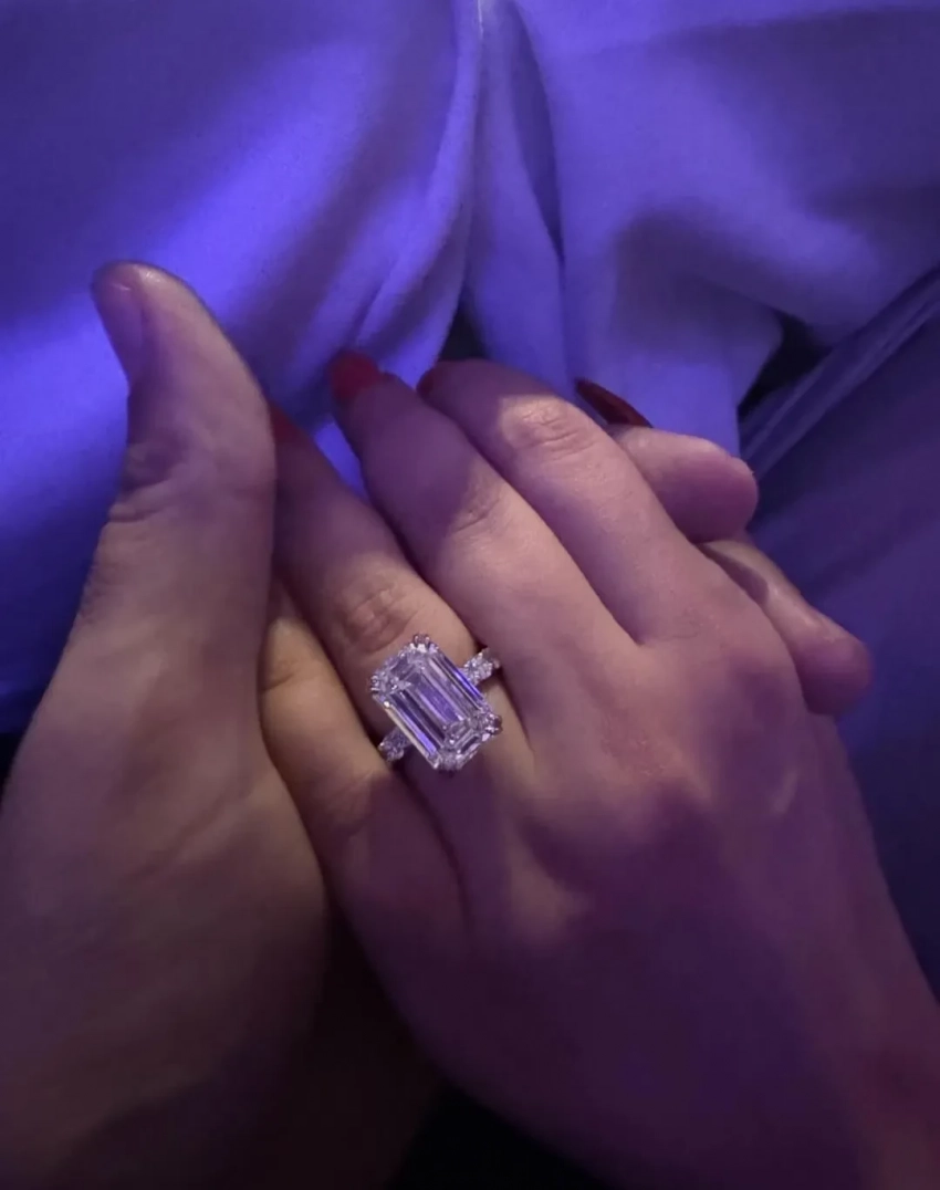 Как пишет Page Six, это кольцо с бриллиантом изумрудной огранки весом 11,53 карата было изготовлено по индивидуальному заказу ювелиром из компании Mavani & Co, а его стоимость оценивается в 1,1 млн долларов.