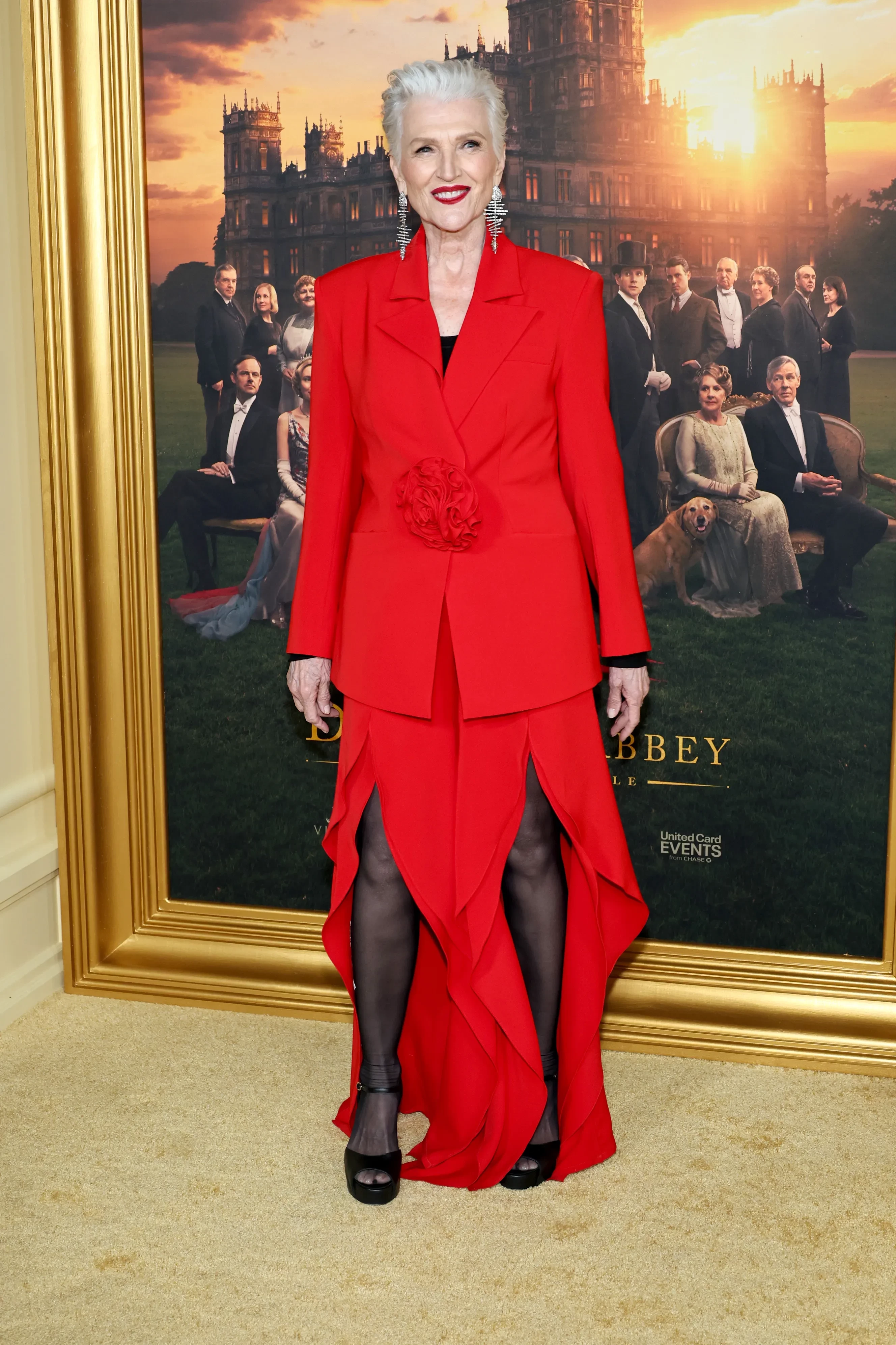 В Нью-Йорке состоялась премьера фильма "Аббатство Даунтон: Грандиозный финал". На красную дорожку вечера вышли исполнители главных ролей — Мишель Докери, которая находится в ожидании ребёнка, Элизабет Макговерн, Лаура Кармайкл, Джоэнн Фрогатт, Хью Бонневилль и другие.