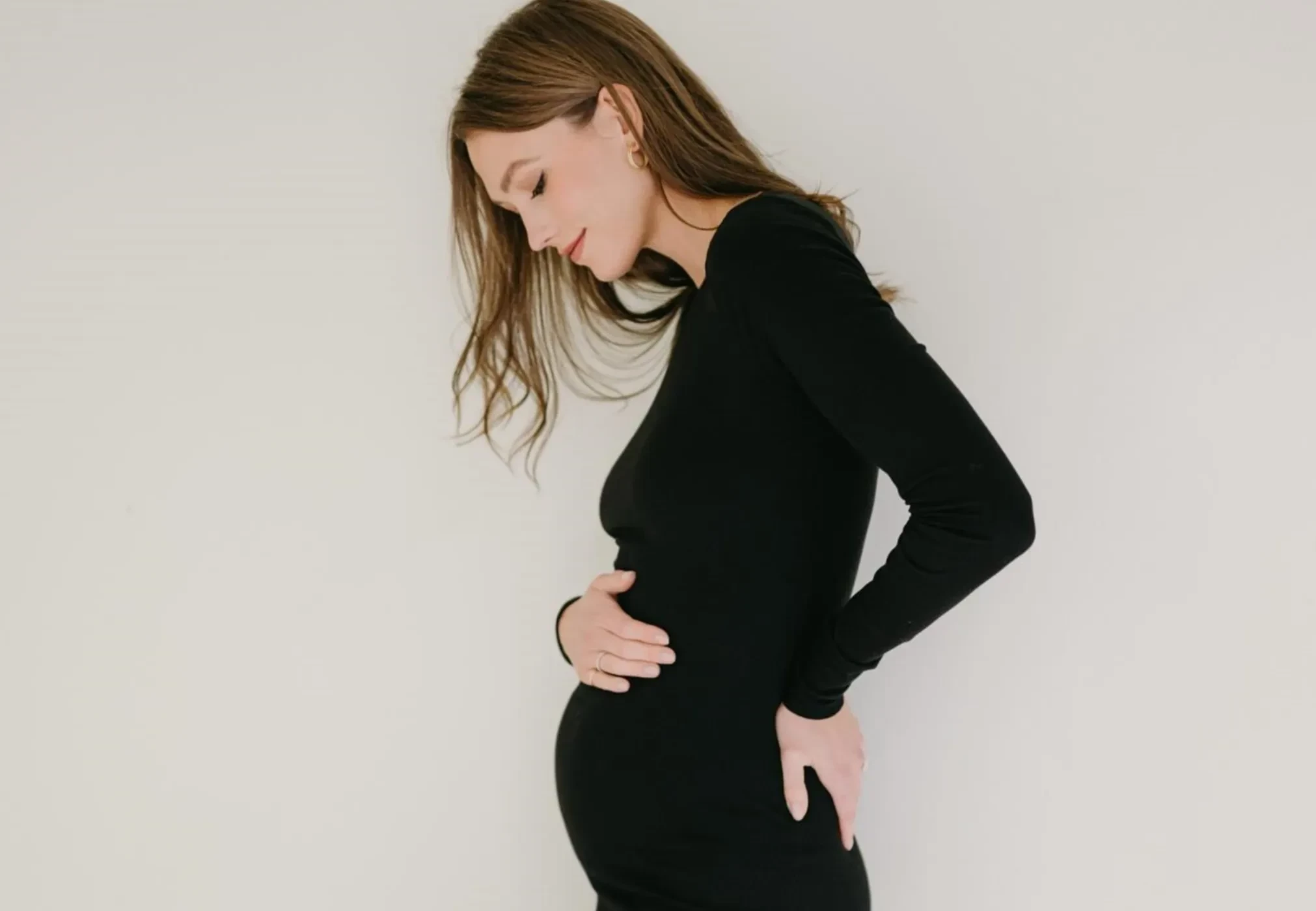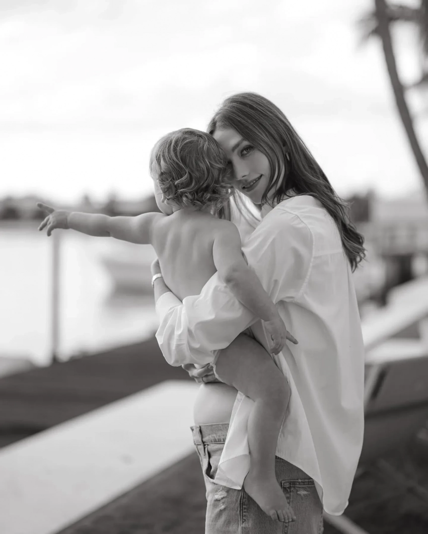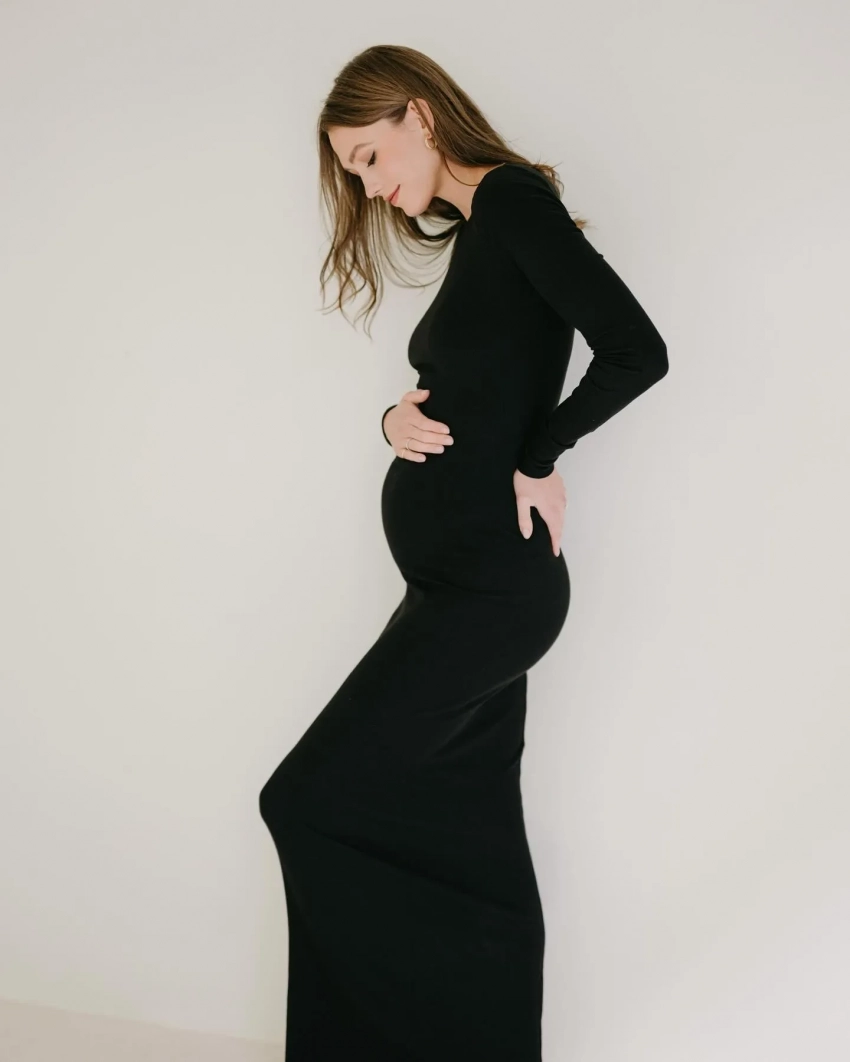На снимках Клосс демонстрирует округлившийся живот, позируя в облегающем чёрном платье с длинными рукавами и белой футболке, которую она задрала, чтобы подчеркнуть свой новый статус. Помимо этого, она добавила кадр, на котором её сыновья Леви и Элайджа обнимают друг друга. "Трое — это уже вечеринка", — подписала Карли публикацию.