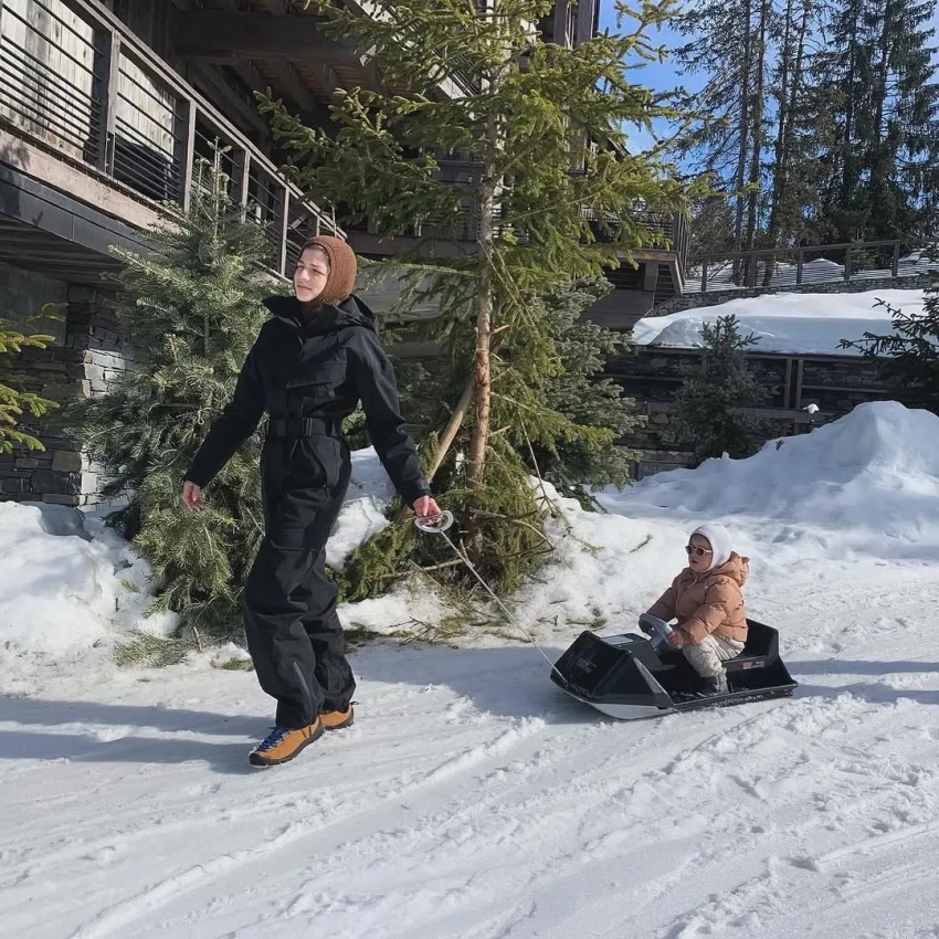 На снимках блогерша возит дочь на санках, отдыхает в отеле, катается на лыжах и пробует еду в местных ресторанах. 30-летняя Саша не уточнила, куда именно отправилась в отпуск и составил ли семье компанию её 33-летний супруг, которого нет на фото.