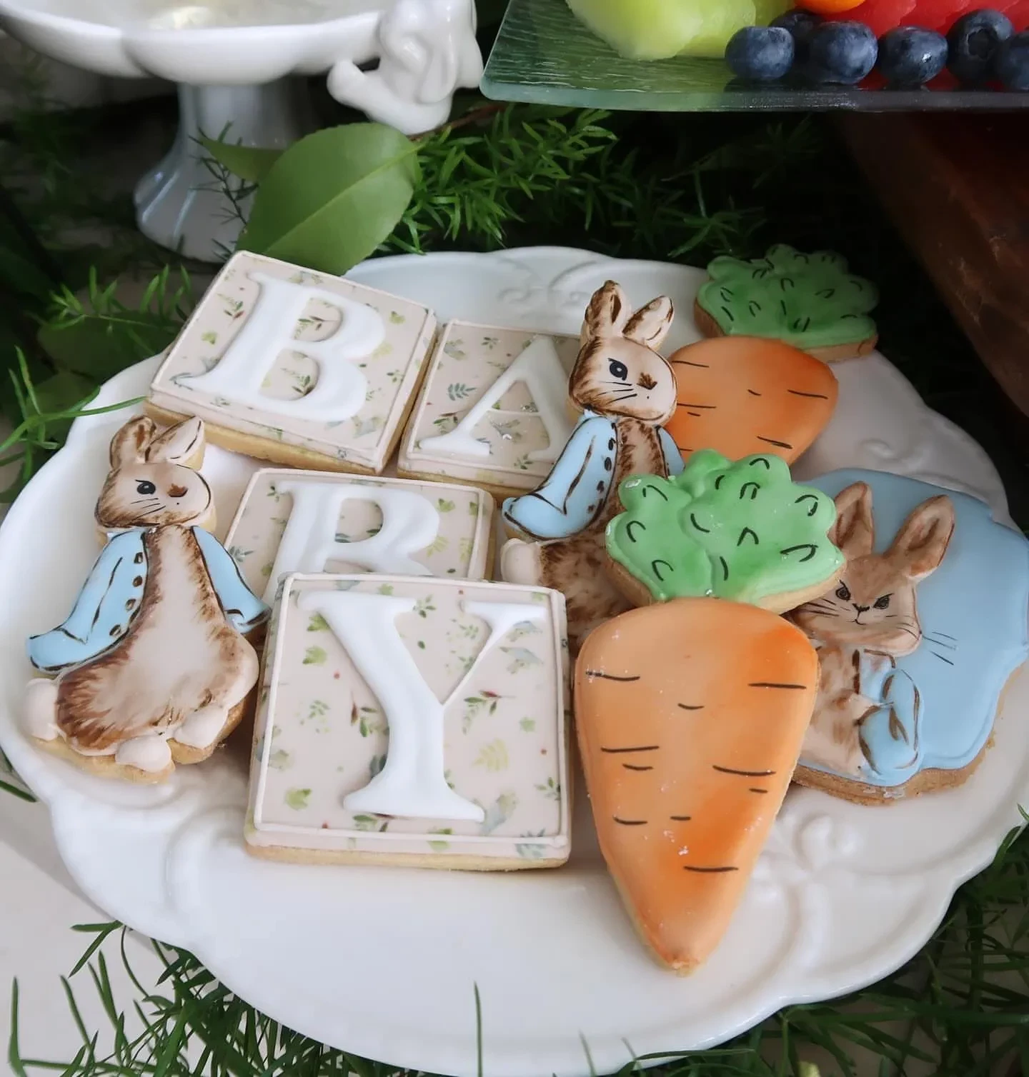 Для вечеринки беременная Тиффани выбрала нежно-голубое платье в пол, её старшая сестра Иванка также была в платье голубого цвета, но более насыщенного оттенка. Сам праздник прошёл в стиле историй детской писательницы и художницы Беатрикс Поттер, главным героем которых был кролик — это нашло отражение и в сет-дизайне и декоре на вечеринке.