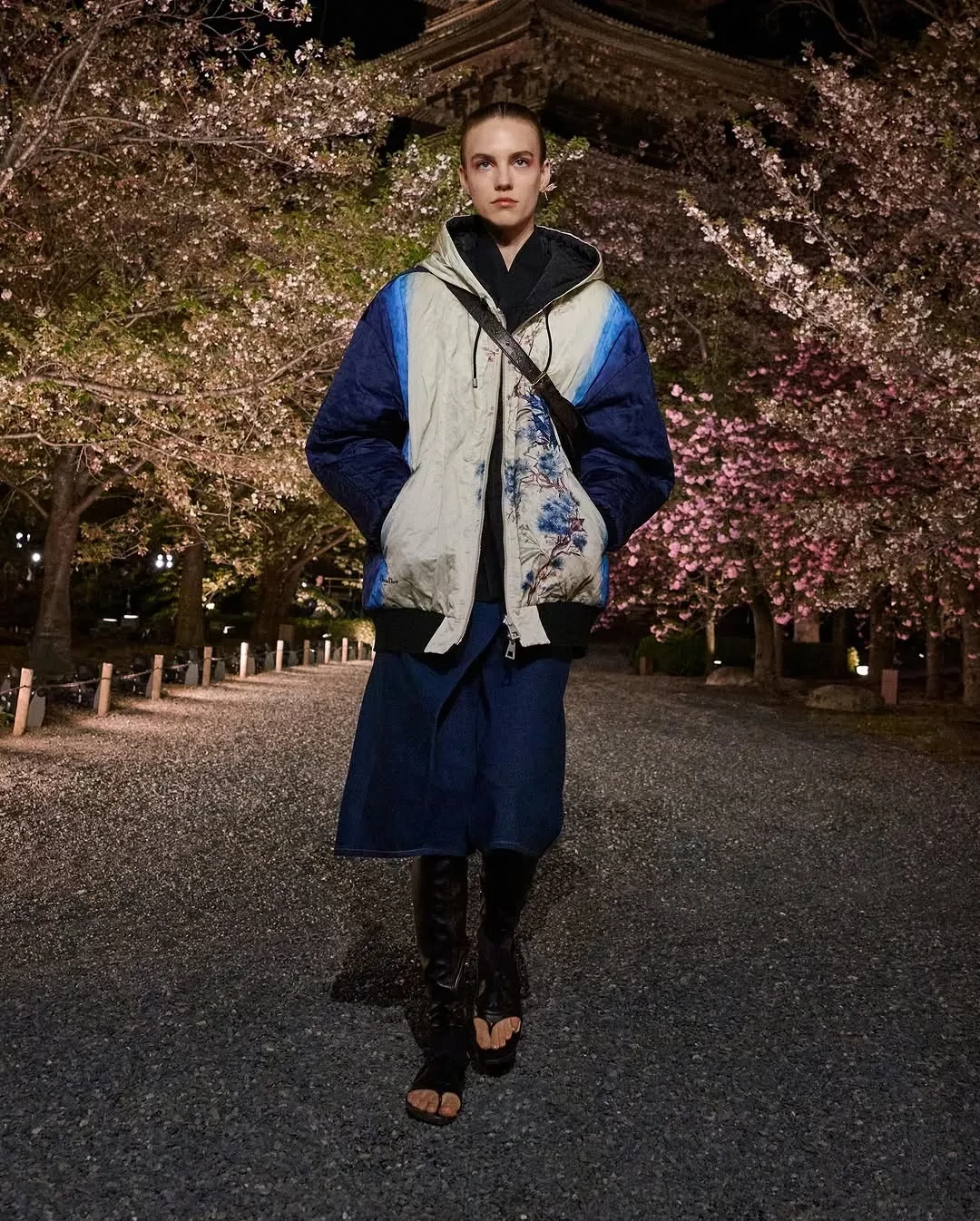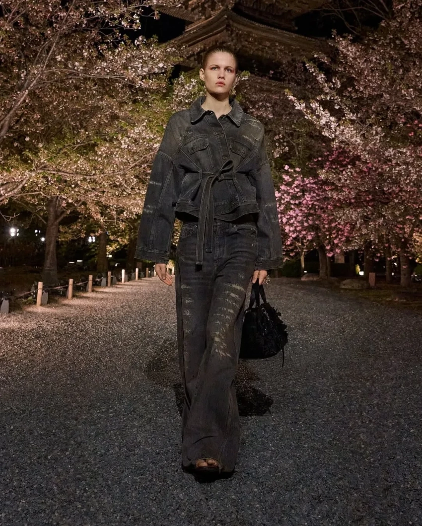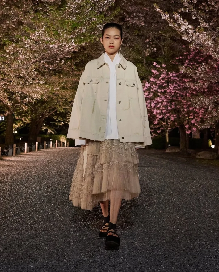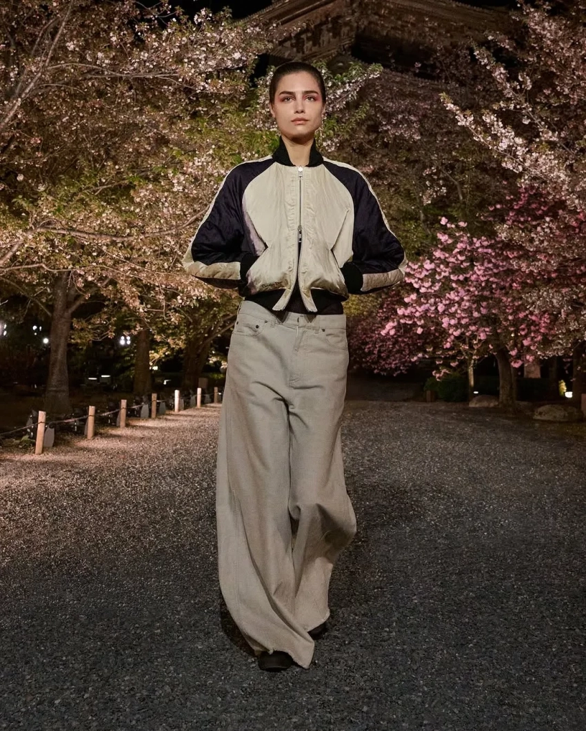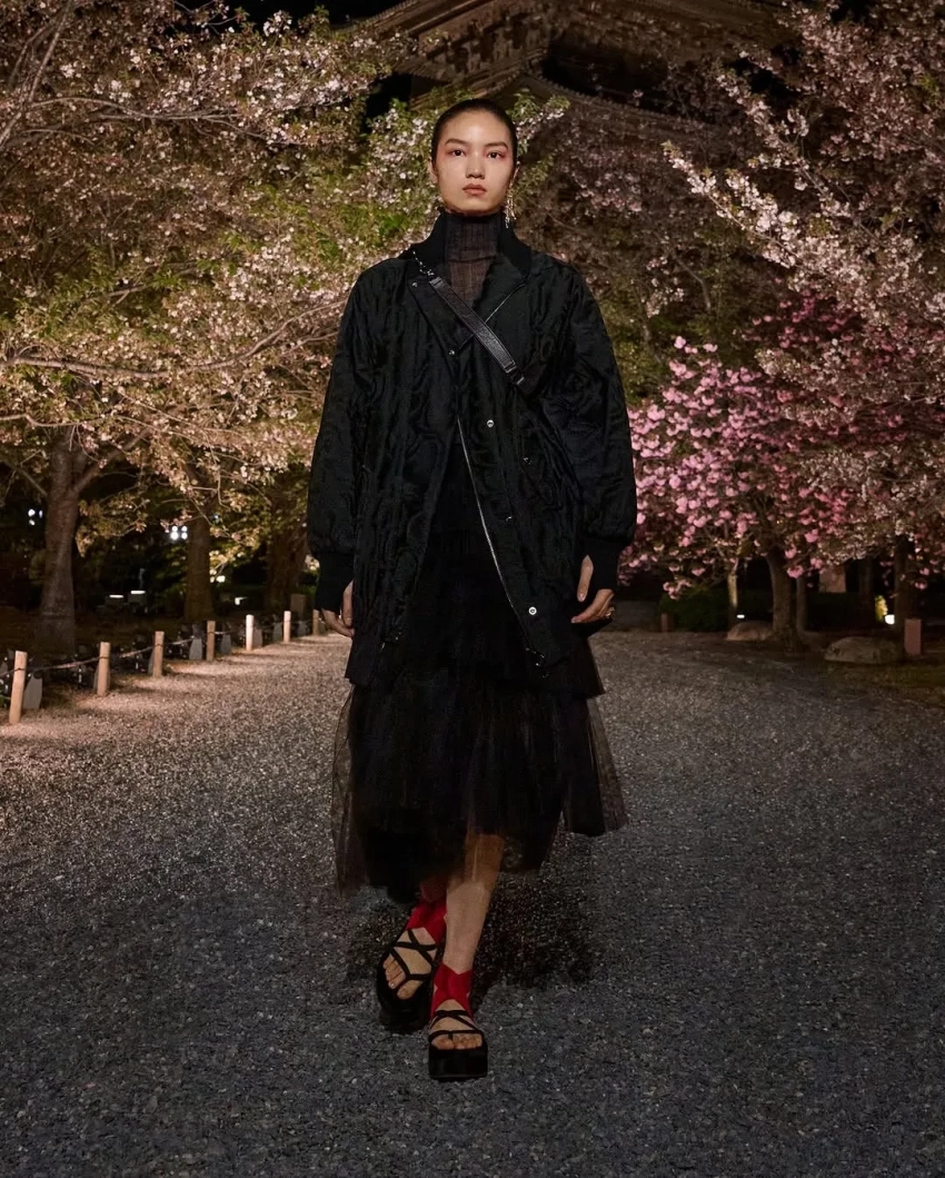 Оксана БондаренкоВ новой коллекции креативный директор модного дома Мария Грация Кьюри показала образы преимущественно в спортивном стиле с мотивами японской эстетики. Модели прогуливались по аллее между деревьями сакуры на фоне пагоды в бомберах с росписью, широких джинсах и многослойных юбках. На ногах они носили обувь на платформе со шнуровкой и в стиле традиционных японских дзори.