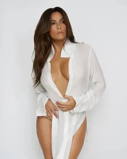 Ева Лонгория для ByrdieСтоит отметить, что прежде в карьере Лонгории действительно были откровенные съёмки. Например, в 2013 году она снялась практически обнажённой для испанского Elle — её тело покрывали только кристаллы. Она также регулярно появлялась на публике в откровенных нарядах.