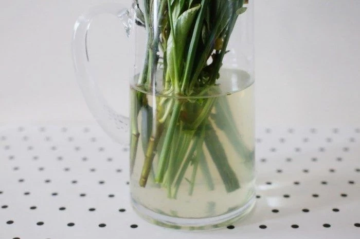 Меняйте воду ежедневно и каждый раз обновляйте срезы на стеблях под углом. Удаляйте увядшие или подгнившие части. Это поможет избежать появления гнили и неприятного запаха.