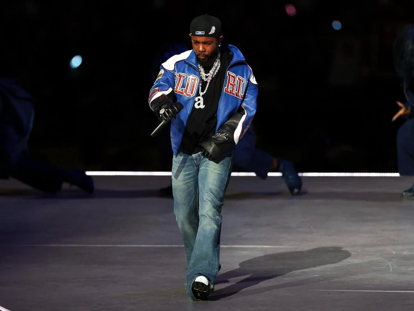 Стиль Кендрика Ламара — это всегда не просто одежда, а целое послание. К джинсам он добавил кастомный бомбер от Martine Rose с надписью «Gloria» на спине. Сначала многие зрители приняли это за логотип спортивной команды «Флорида Гейторс», но вскоре стало понятно, что за этим скрывается гораздо больше. Вдохновением для этой детали послужил заключительный трек его альбома GNX, где «Глория» олицетворяет личное творчество артиста и его борьбу с эго. Слово «Gloria» в переводе с испанского означает «слава», и этот символ стал важной частью его музыкального пути.