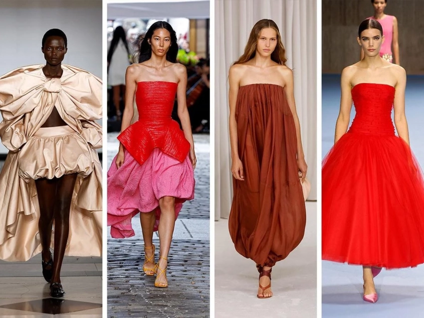 Пышные силуэты подчеркиваются ремнями и поясами, создавая эффект цветочного бутона. Дизайнеры вдохновляются сказочными и кукольными образами, создавая наряды с многослойными юбками и рукавами.