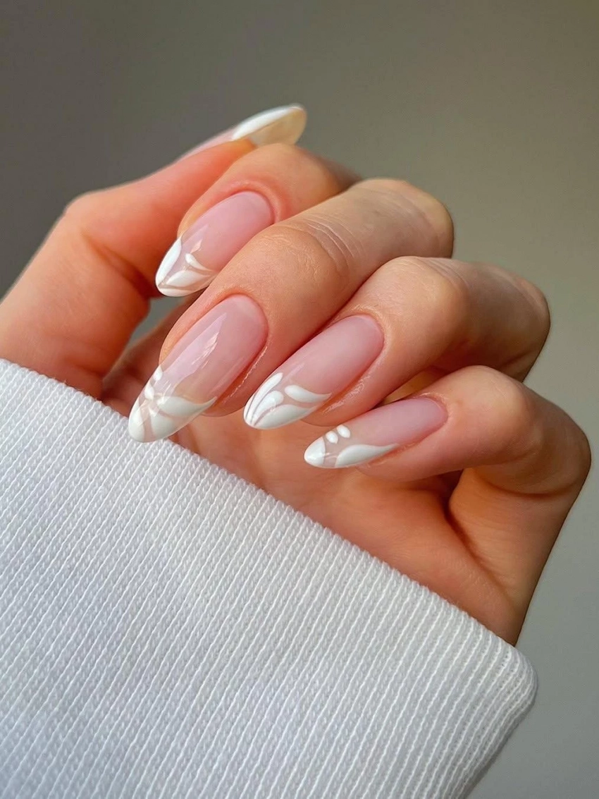 2. Френч с изюминкой — белоснежные узоры вместо полоски