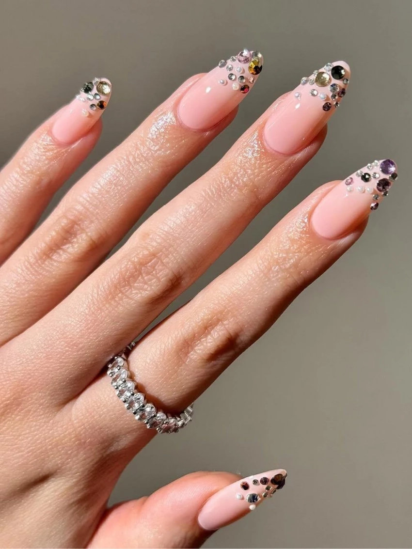 В 2025 году свадебный маникюр необязательно должен быть скромным. Россыпь страз, жемчужин или кристаллов сделает ваш образ более выразительным. Особенно гармонично такой нейл-арт смотрится в дуэте с расшитым платьем или украшениями в стиле арт-деко.