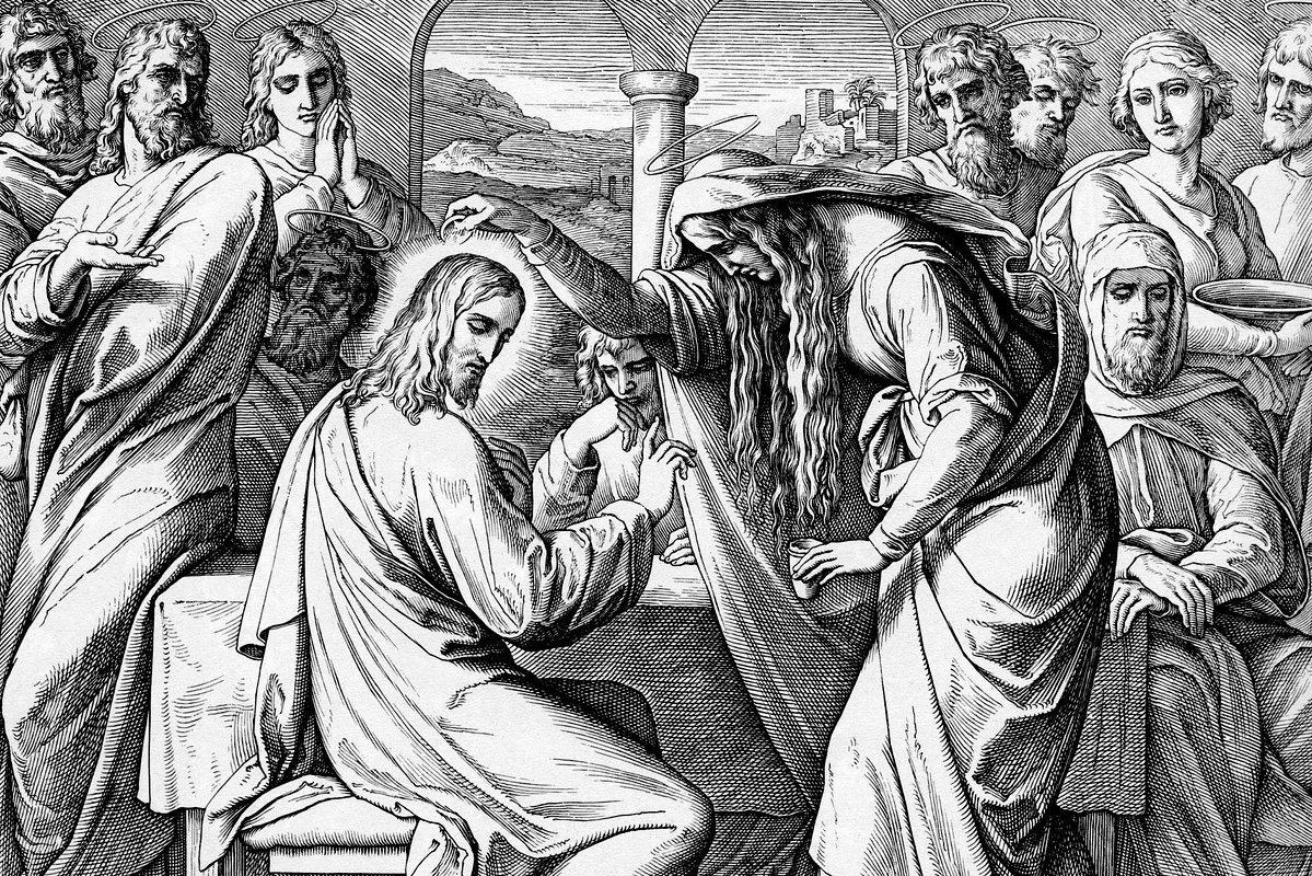 Иисус в этот день находился в Вифании, в доме Симона прокажённого. Во время трапезы к Нему подошла женщина с сосудом драгоценного мира и вылила его Ему на голову (по другим евангельским версиям — на ноги). Этот жест стал символом любви, покаяния и предчувствия скорого погребения Христа. Хотя ученики негодовали из-за, как им казалось, напрасной траты, Господь принял жертву женщины как святое предзнаменование.