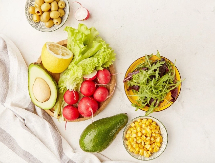 • свежие овощи и фрукты, салаты;